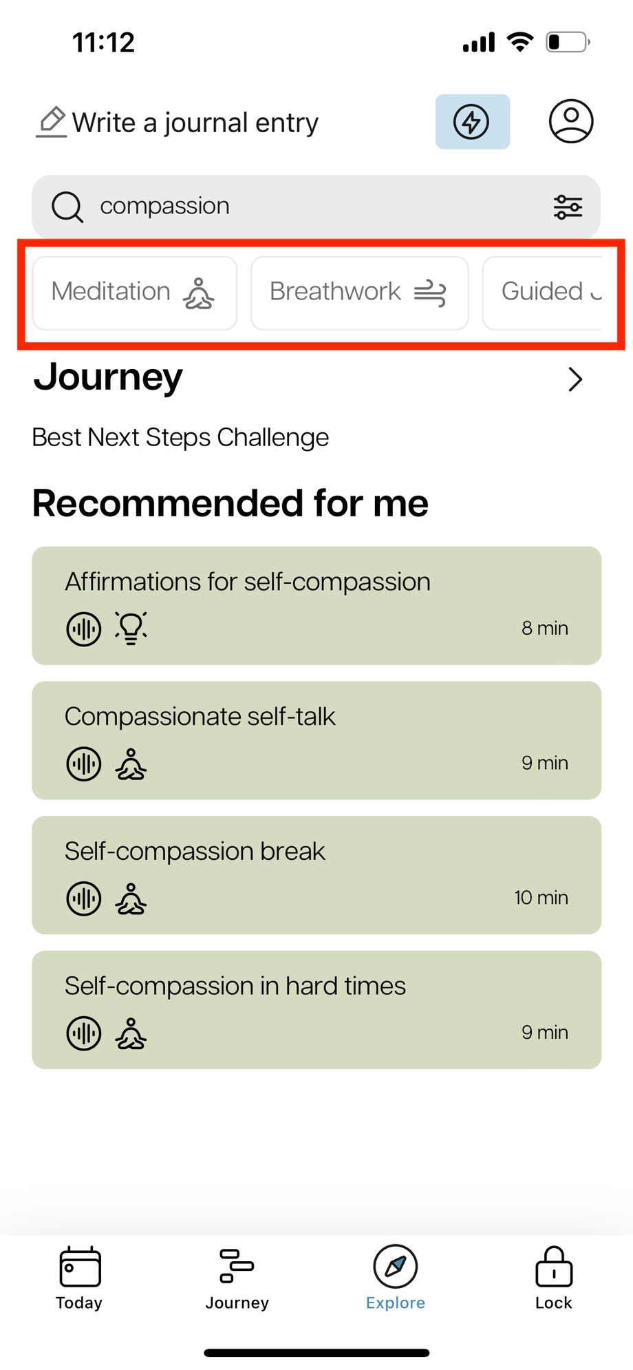 Type a term, like compassion, in the search bar to find practices with that term in the title.