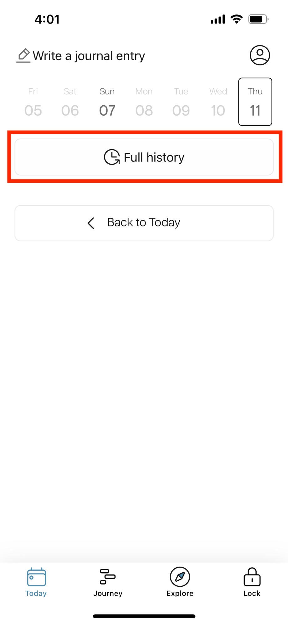 Click on a date where you've completed a reflection. It will be a dark grey rather than a light grey. Click Full History.